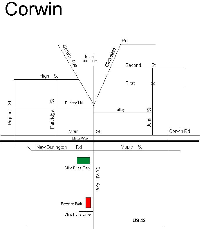 Take U.S 42 SOUTH to Waynesville Rd. Take Waynesville Rd. until you come to Middletown Rd. Turn LEFT and cross over the covered bridge on Middletown Rd. Then turn RIGHT onto Corwin Rd. to the first road on the LEFT, which is Elbon Rd. this will run into Gard Rd.